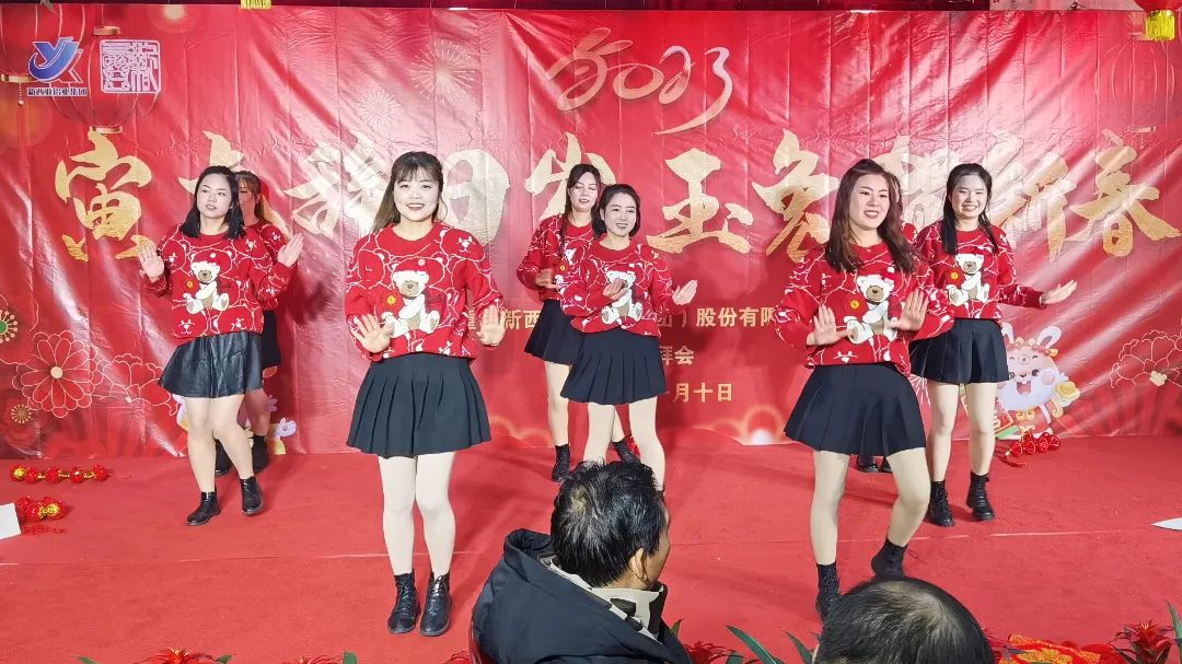 16點30分,來自后勤保障部門的姑娘們帶來的舞蹈《福氣要來到》熱舞開場,拉開了新西亞2023新春團拜晚會的帷幕。一首開場秀跳罷,臺下觀眾已然沸騰,恭賀新春的氣氛瞬間爆棚。
